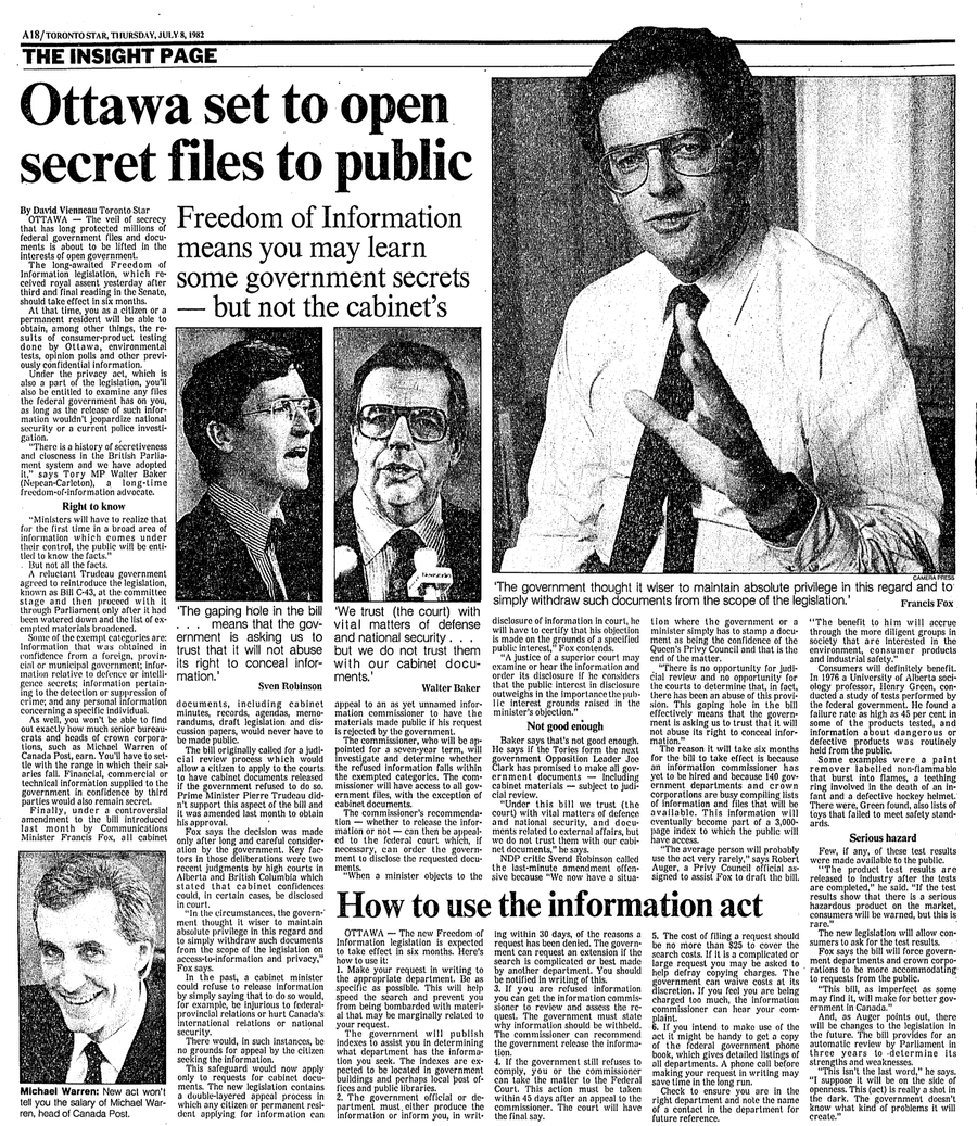 The federal government finally got around to passing freedom of information legislation in 1982.