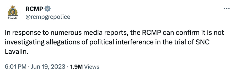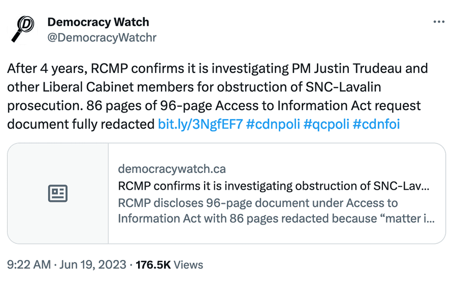 But this wasn’t true. After Democracy Watch’s tweet, numerous news outlets picked up the story and reached out to the RCMP for comment, which prompted them to respond.